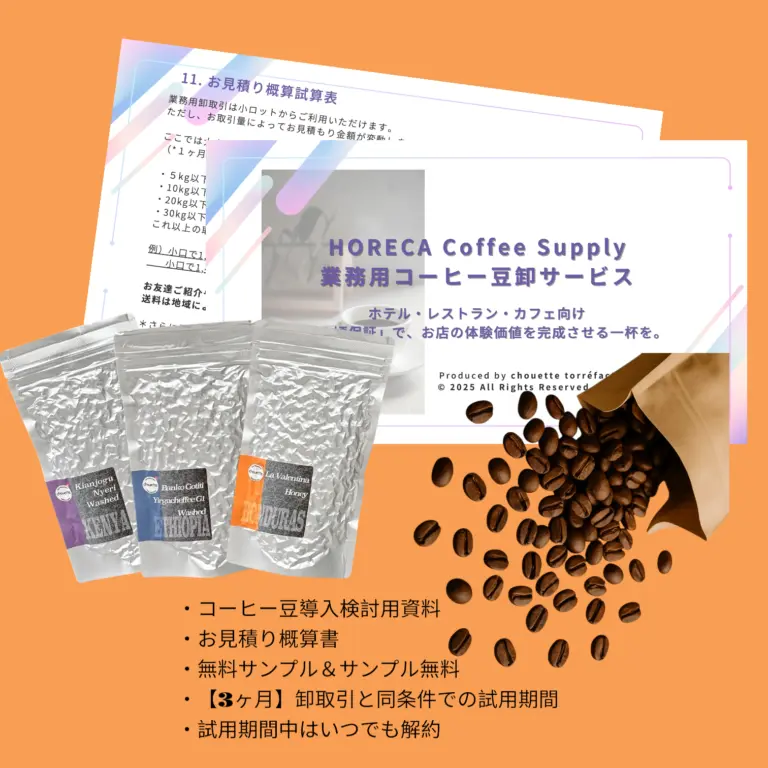 「HORECA Coffee Supply」は、ホテル・レストラン・カフェに特化したコーヒー卸売サービスです。